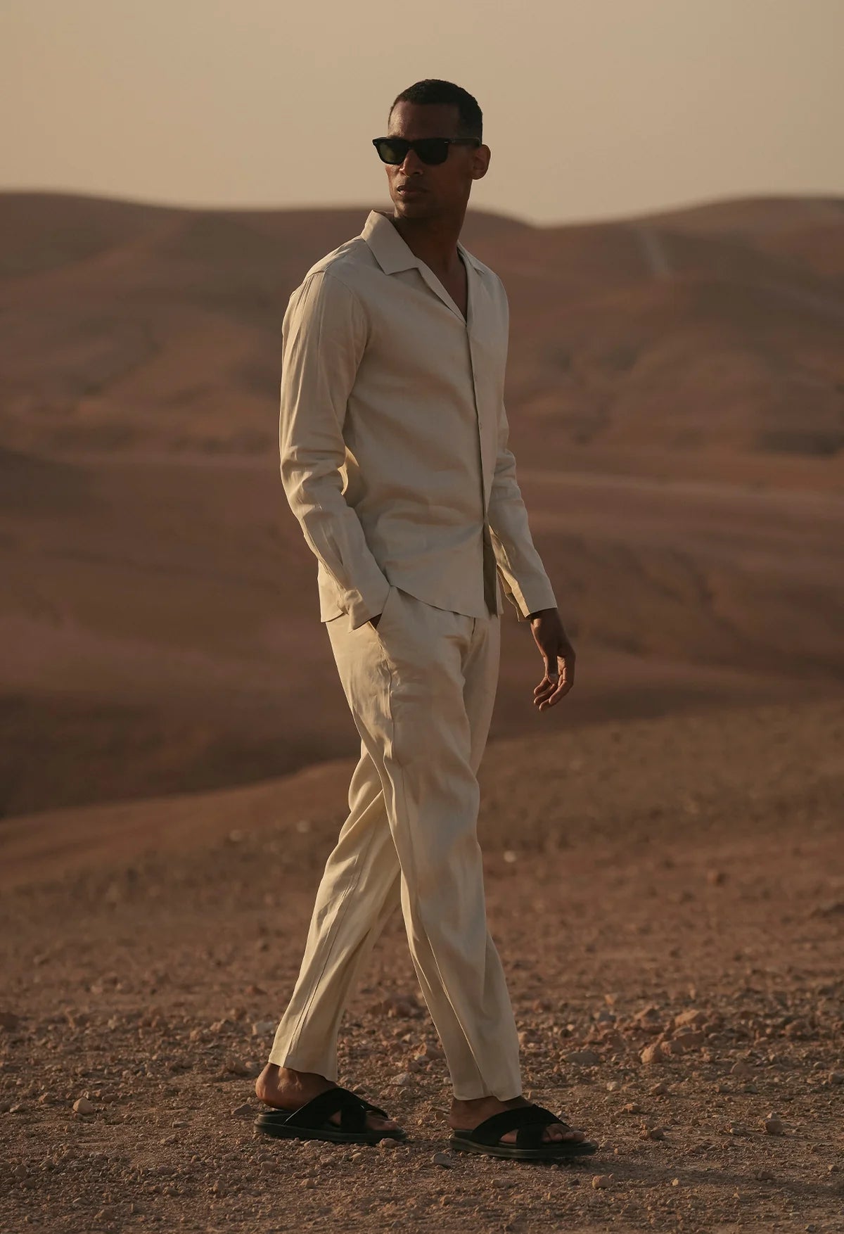 The summer set of shirt and trousers blends effortless ease with a refined look. Breathable fabric keeps you cool on warmer days, while the relaxed fit ensures comfort without losing structure. The shirt drapes naturally, the trousers sit easy together creating a look that feels simple, yet intentional.